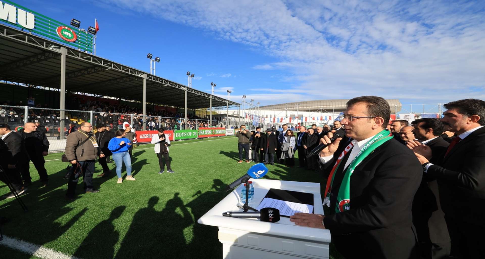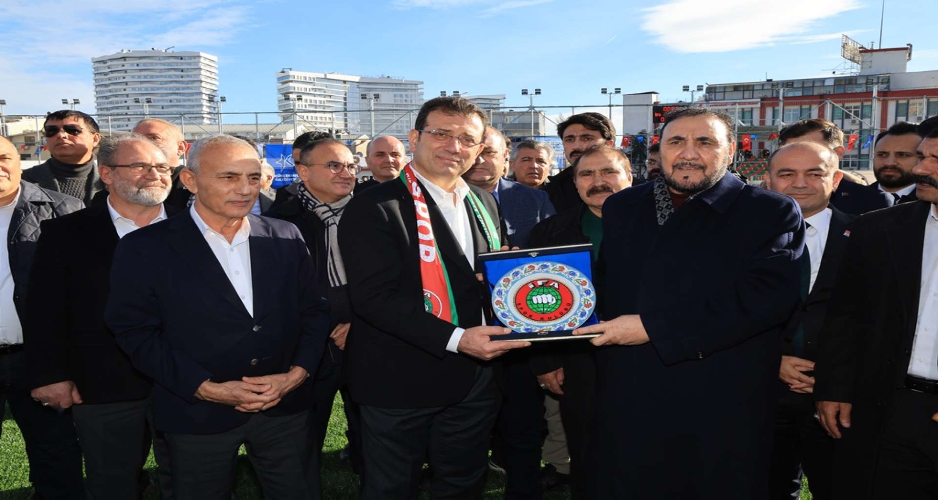 İFA Spor ile Dil İskelesi arasında oynan bölgesel amatör lig maçı başlamadan önce Türkiye Caferiler Lideri Selahattin Özgündüz, İmamoğlu’na teşekkür plaketi verirken, İFA Spor Kulübü Başkanı Aydın Aydeniz de Kemal Çebi’ye plaket verdi. İmamoğlu’na 34 numaralı İFA Spor forması hediye edildi. Daha sonra İmamoğlu ve beraberindeki heyet kurdele kesimi ile açılışı gerçekleştirdi.