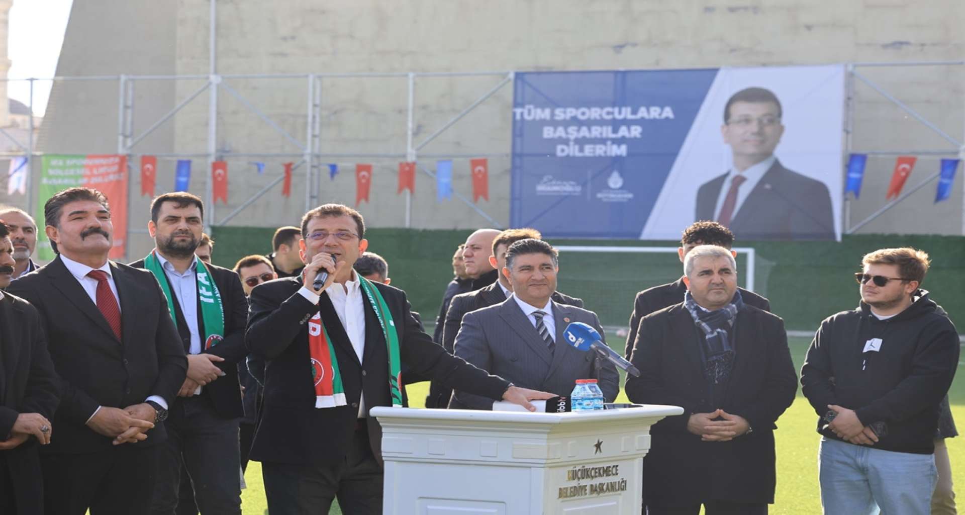 İFA Spor’a farklı branşlarda gösterdiği yolculuğunda başarılar dileyen İmamoğlu, şunları söyledi: “İFA Spor’un yanında olacağımızı, hizmetlerimizin devam edeceğini buradan belirtiyorum. Branş sayısının artmasını diliyorum. Sadece futbol değil farklı branşlarda da hizmet verdiğini biliyorum. İnşallah daha da artacaktır. Mustafa Kemal Atatürk, ‘Ben sporcunun zeki, çevik ve ahlaklısını severim’ demiş. Aslında bu kulüpler her çocuğumuzun, her gencimizin hayata zeki olmak, çevik olmak, ahlaklı olmak yolunda attığı bir adım oluyor. Bu kapsamda kulüplerimizi de önemsiyorum. Bugün burada çok önemli bir maç oynanacak. Bu maçta hem İFA Spor’a hem rakibine başarılar diliyorum. İnşallah güzel bir mücadeleyle hak edenin kazandığı ama bugün İFA Spor kazanırsa da fena olmaz diyelim. Hepinizi sevgiyle, saygıyla selamlıyorum. Başarılar dilerim her iki kulübümüze de. Hayırlı uğurlu olsun tesisimiz.”