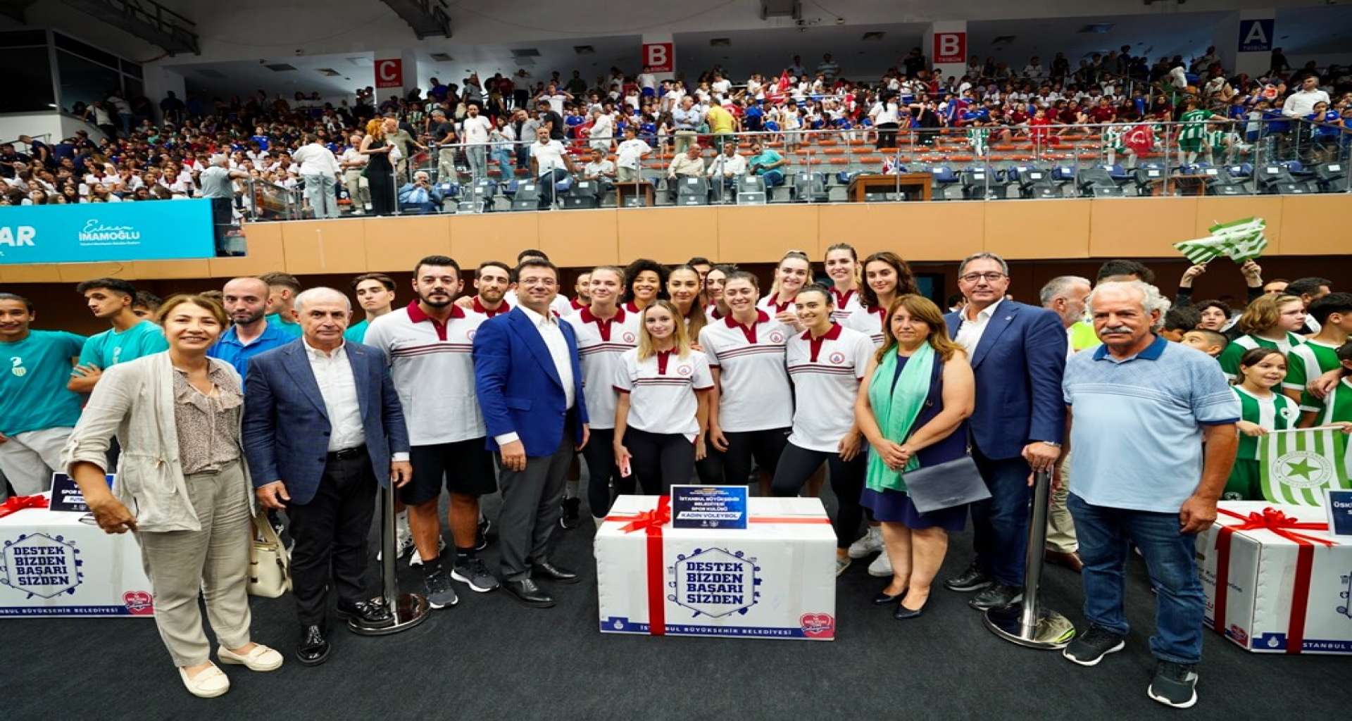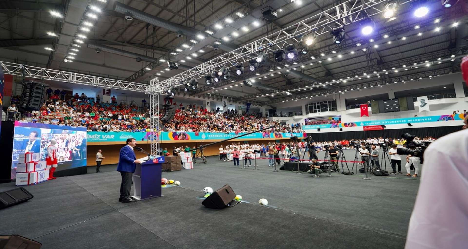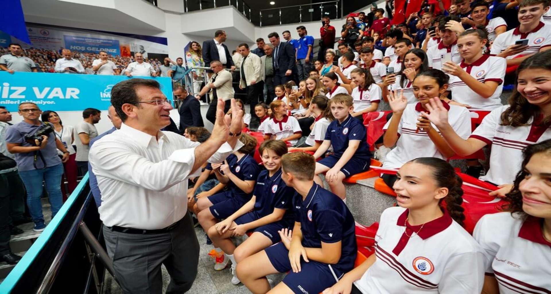 Düşmez’in, sporu ve sporcuyu; Yazıcı’nın İBB’nin sporla ilgili yatırımlarını anlattığını belirten İmamoğlu, “İstanbul, dünyanın en büyük şehirlerinden bir tanesi. Genç bir nüfusumuz var. Çok çalışmamız lazım. Genç nüfusumuzu en fazla istediği şey, tabii ki spor yapabilmek. Spor için tesis lazım, iyi bir eğitim lazım. Bu konuda kulüplerimizin desteklenmesi lazım. Geçmişte spor kulüplerine hizmet etmiş birisi olarak, sporcu bir geçmişi olan bir insan olarak, gerçekten tüm yurttaşlarımızın spor olanaklarını artırmaya özenli davranıyoruz” dedi. Genç sporculara başarıya ulaşmaları noktasında fırsatlar sunma amacında olduklarını vurgulayan İmamoğlu, “Hem bütün şehre yaygınlaşan spor okullarımız üzerinden hem de kulüplerle kurduğumuz diyaloglarla, sporu ve sporcuyu mutlak destekliyoruz. Hedefimiz; 2036’da İstanbul'da olimpiyatlara ev sahipliği yapmak. Bu salonda bulunan çocuklarımızın bir kısmı inşallah İstanbul'daki olimpiyatlarda altın madalya kazanacak çocuklarımız olsunlar. Onların o başarıyı elde edeceklerini çok inanıyor ve biliyorum” şeklinde konuştu.