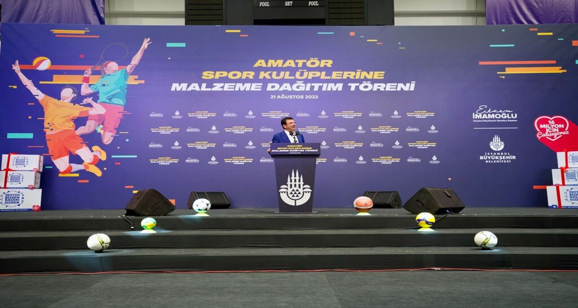 İBB, 2023 yılı içerisinde, 20 branşta, 115 farklı kalemde, toplam 377 bin 920 adet malzemenin 1250 amatör spor kulübüne dağıtımını başlattı. Malzeme dağıtım töreninde konuşan İBB Başkanı Ekrem İmamoğlu, “Spor hem bedeni hem fikri hem de zihni olarak, insanları iyi geliştiren bir yol haritasıdır. Bu bağlamda tesisleri açtık ve oralarda şampiyonlarımızı yetiştirmeye başladık. 144 kulübe, 21 bin 240 sporcuya hizmet eden tesislerimiz var. Yeni tesislerimizi yapmaya devam ediyoruz. Temeller atmaya devam ediyoruz. Sporun ve sporcunun yanında olmaya devam edeceğiz” dedi. 2023 yılı spor malzemesi desteği kapsamında 39.285.323,00 TL’lik spor malzemesi kulüplere dağıtılacak. Böylece, İBB Başkan’ı Ekrem İmamoğlu’nun göreve başlamasından bugüne kadar amatör spor kulüplerine yapılan malzeme desteğinin miktarı toplamda 70.000.628,00 TL’ye ulaşacak.