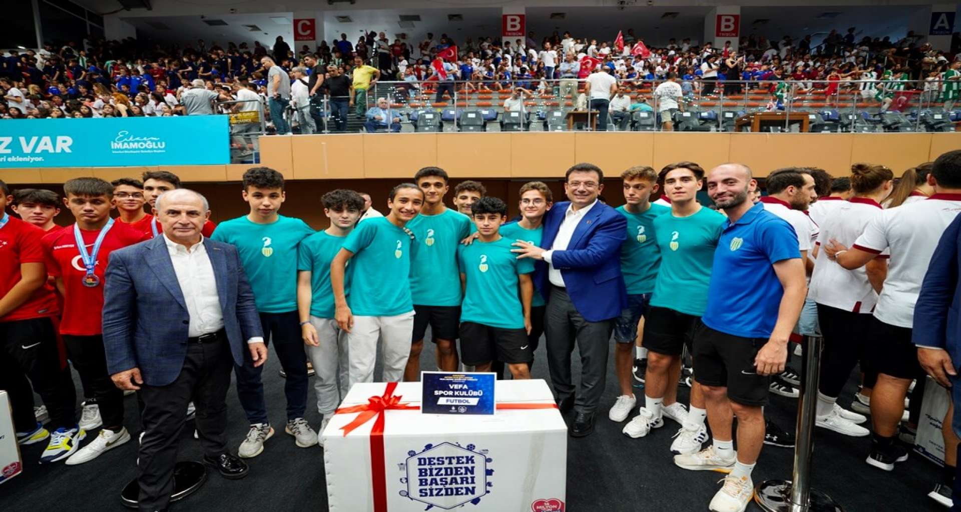 İmamoğlu, konuşmasının ardından, Büyükçekmece Belediye Başkanı Hasan Akgün ve İBB Spor Kulübü Başkanı Fatih Keleş’in de katılımıyla, saha içindeki sporcularla anı fotoğrafları çektirdi.
