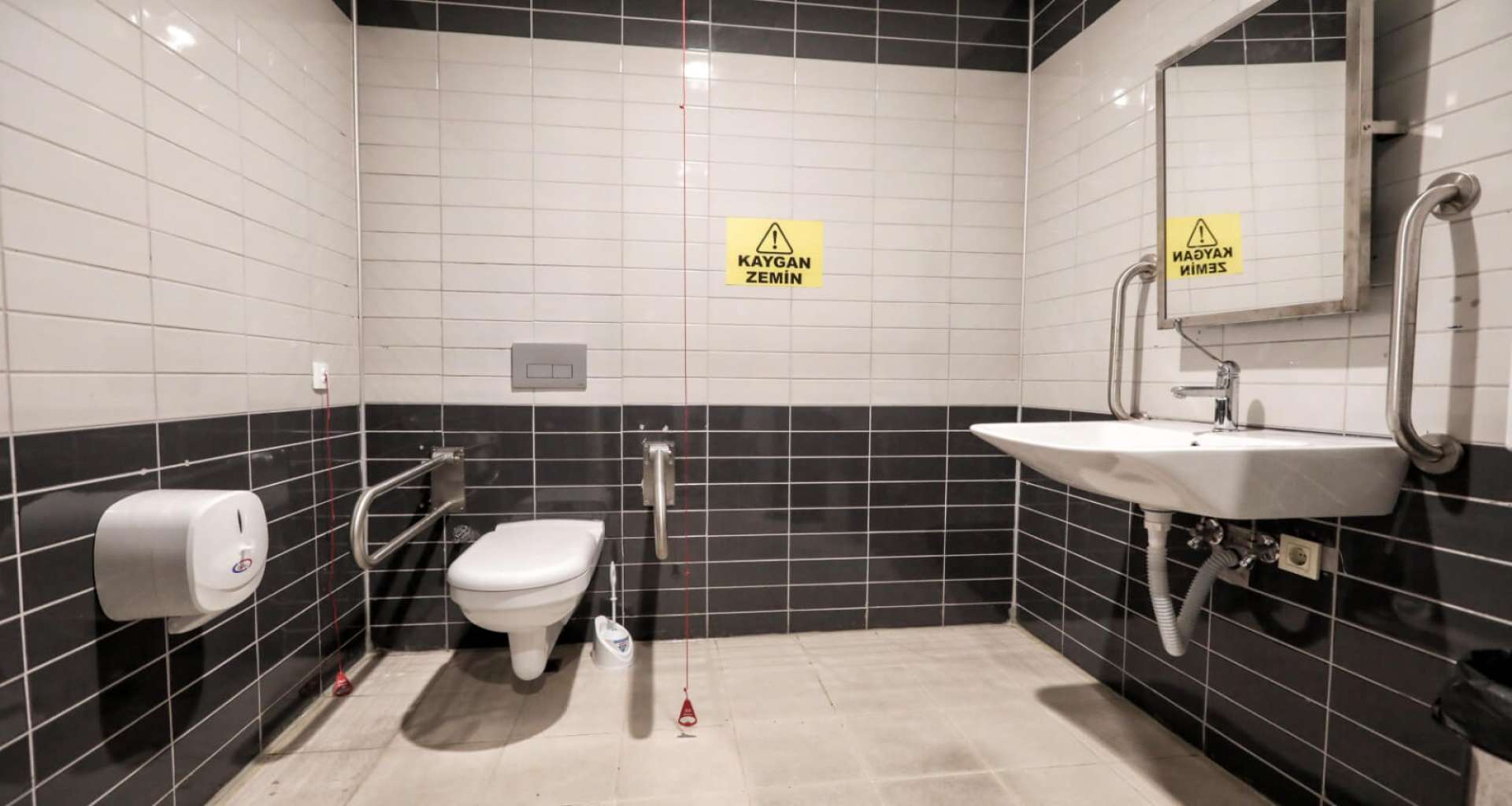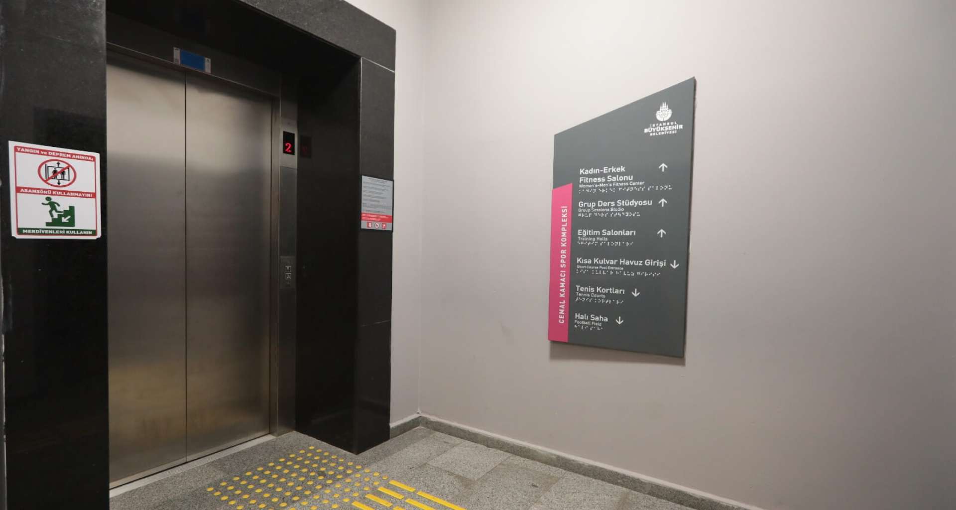 Standartlara uygun eğim ve ölçülerde yapılan bu alanlara ek olarak görme engelli bireyler için bilgilendirme, numaralandırma, işaretleme ve yönlendirme işlemleri de unutulmadı. Gerekli yerlerde sesli ve görsel uyarı sisteminin devreye alındığı, Braille alfabeli rakam ve yazılar ile yapılan bilgilendirme ve yönlendirmelerin kullanıldığı tesiste zemin üzerinde kılavuz iz, kesik kubbe yüzey ve eliptik yüzey gibi duyumsanabilir( hissedilebilir) öğeler tercih edildi.